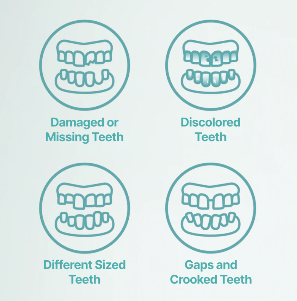 Du kan använda den av kosmetiska skäl – för att täcka gluggar, missfärgningar eller skadade tänder. Den fungerar som en hel täckprotes för ditt leende.